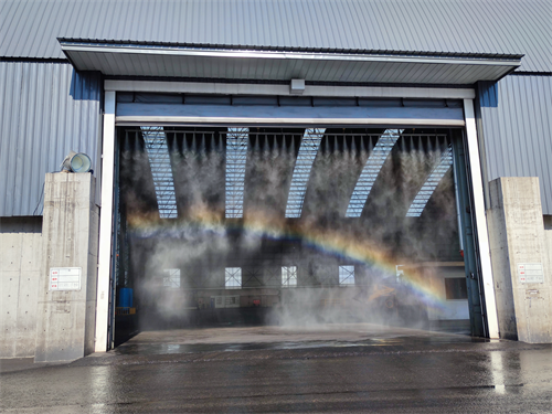 物料转运站粉尘的产生主要有运动物料和空气剪切作用、下落物料与挡板的碰撞、受料皮带与物料的碰撞等产生。在此位置安装九九智能环保干雾抑尘系统,在皮带下料口和皮带受料口各布置一个干雾箱,干雾箱由物料传感器控制工作,同时接受远端和本地人工控制。