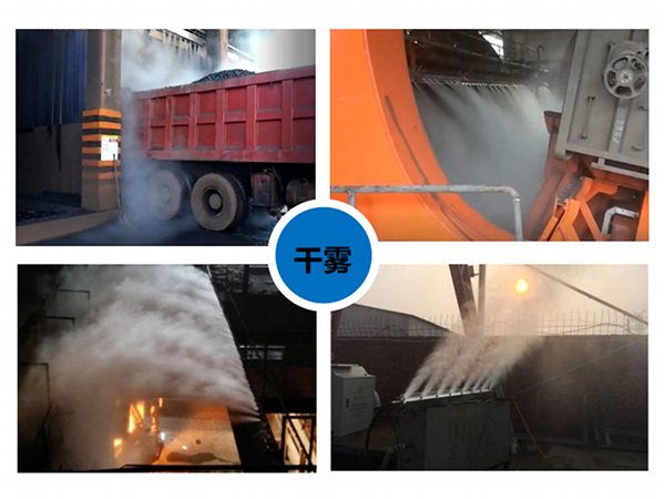 干雾系统抑尘技术采用超声干雾抑尘机理利用高压气流冲击喷嘴中的共振腔产生超声波,借助超声波将液态水充分雾化成粒径1-10微米的“干雾”雾滴,与空气中的粉尘颗粒结合,形成粉尘和水雾的团聚物,经过重力作用使粉尘沉降下来,实现源头抑尘,对大气细微颗粒污染的治理效果明显,是目前最主流、应用最为广泛的除尘技术。