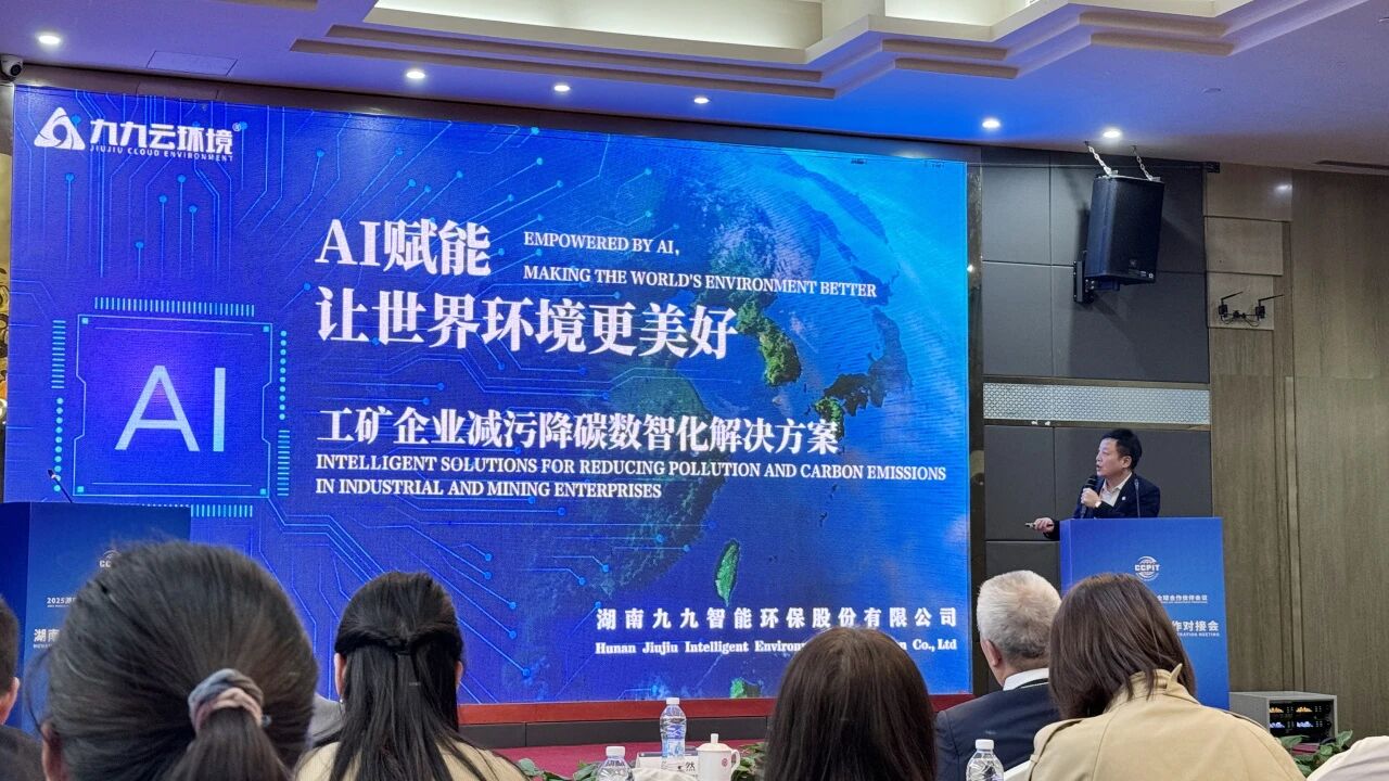 在湖南-美国经贸合作对接会上,九九智能环保董事长刘黎明分享了公司在AI赋能绿色转型方面的创新成果与实践经验。作为国家级专精特新重点“小巨人”企业,九九智能环保始终致力于以“AI+节能减污降碳”为核心,推动工业环保与能碳管理智能化。