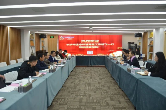 董事长刘黎明对许雄飞一行的到来表示了感谢,他说,市生态环境局一行的到来让九九智能环保增信心、鼓干劲。作为湖南省本土环保企业,将会紧跟国家政策,立足湖南实际情况,提供优质的环保服务。