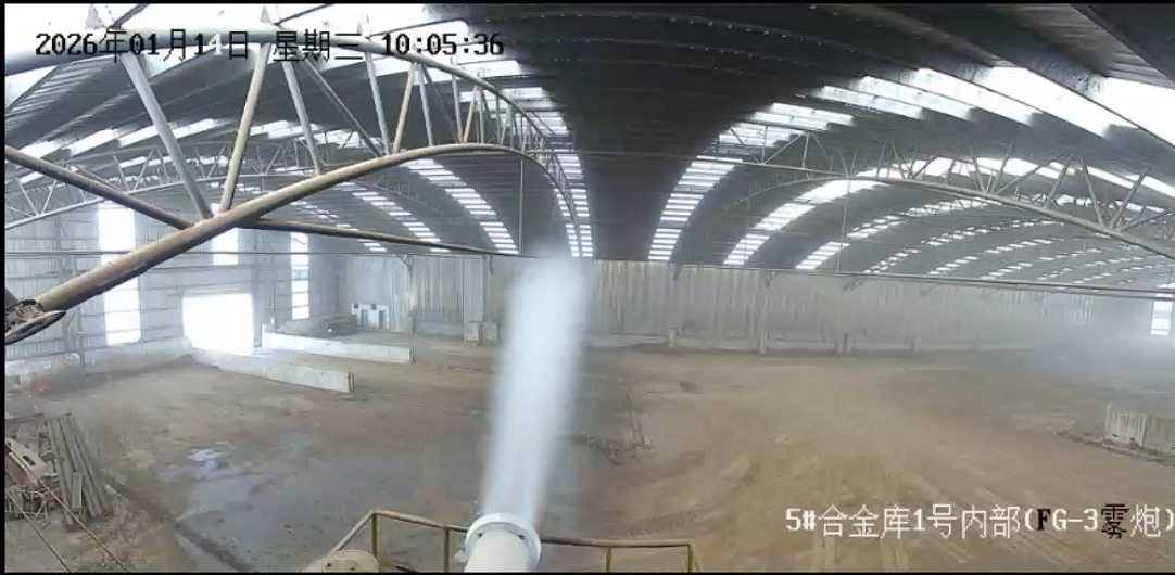 在无组织排放改造方面,九九智能环保为北港新材料制定了系统性的治理方案。针对原料厂、初炼厂、矿热炉厂、炼钢车间等料场区域,以及综环厂直还原危废库等重点部位,通过部署多型号超细雾炮实施精准抑尘,并在物料进出口设置洗车平台,全面提升了无组织排放管控水平。