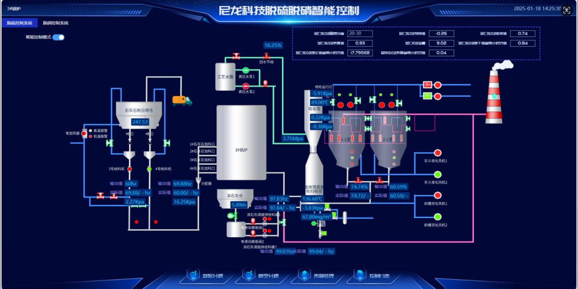 在环保要求日益严格的今天,脱硫脱硝系统的稳定运行和精准控制成为企业绿色发展的关键。然而,传统控制方式在面对复杂工况、多变量耦合和大时滞等问题时,往往力不从心。如何实现高效、经济、安全的污染物控制?九九智能环保自主研发工业源烟气脱硫脱硝及氨逃逸AI精准控制系统,帮助企业构建“监测-预测-优化-控制”智能管理体系,助力企业减污降碳,绿色转型。