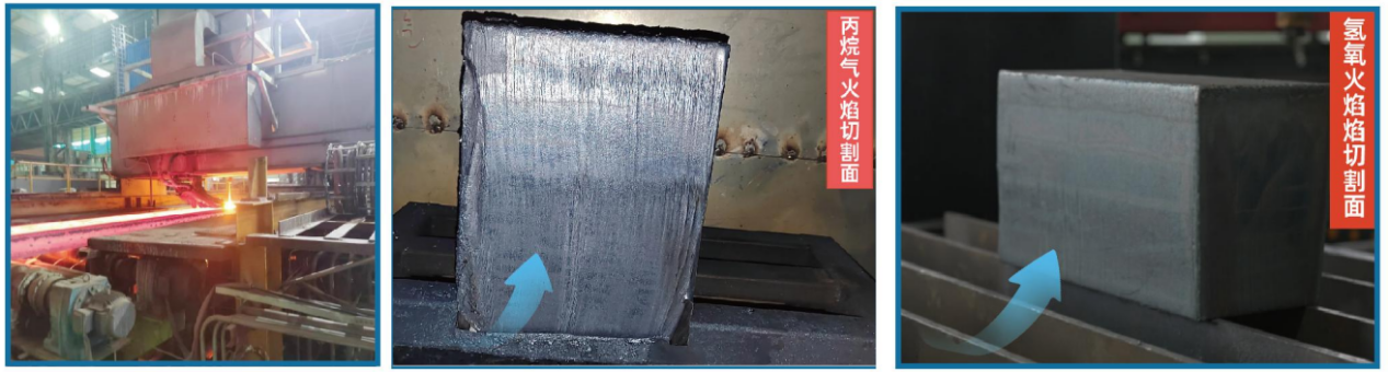氢氧火焰热力集中、渗透快,切割后钢坯表面氧化皮厚度可降低50%以上,大幅减少了清理工序的时间和成本,提升整体生产效率。