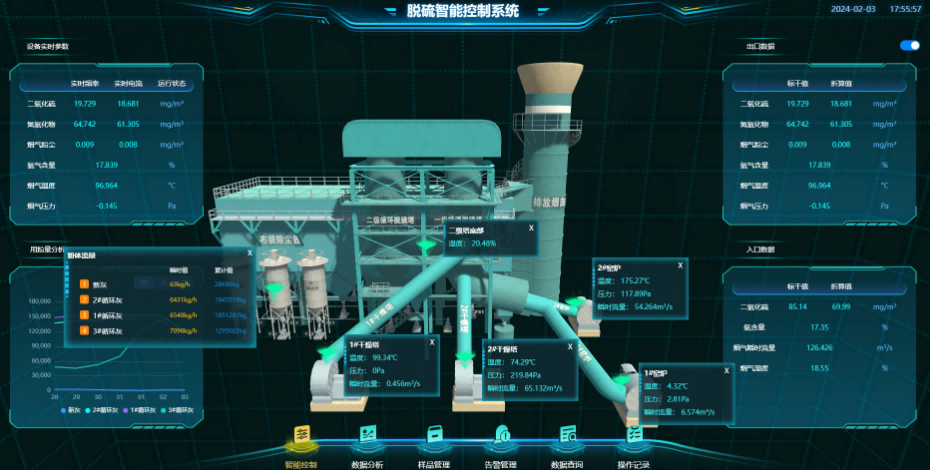 现状诊断涵盖五个关键维度:工艺设计方面,重点排查流场是否均匀、喷氨格栅布局是否合理;运行效率方面,评估脱硫脱硝效率是否达标、氨耗是否偏高;设备运行方面,检查喷头是否堵塞、风机是否正常、阀门是否卡涩;能效状况方面,判断电耗、氨耗是否高于行业基准;自动化现状方面,评估是否具备自动调节能力、是否存在信息孤岛。