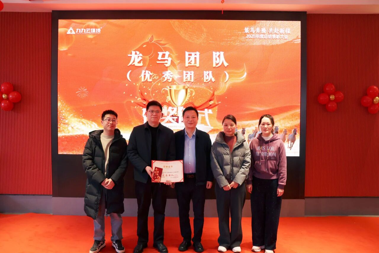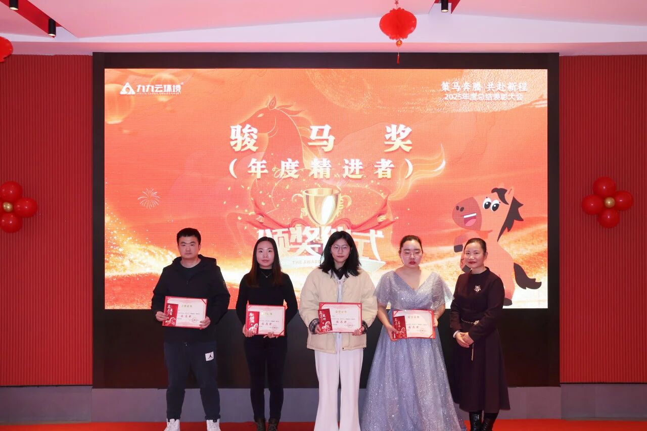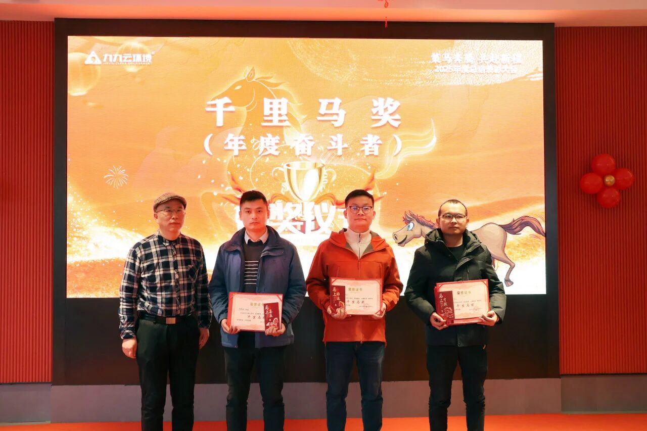 在激昂的乐章与如潮的掌声中,大会迎来了最受瞩目的颁奖环节。三十余位优秀个人及团队依次登台,接受属于奋斗者的高光时刻。值得关注的是,本届表彰以“马文化”为精神脉络,赋予奖项更深层的寓意:从“新马驹”的初露锋芒,到“骏马”的日拱一卒,从“千里马”的久久为功,到“天马”的敢为人先——这不仅是对过去一年实干者的郑重致谢,更是九九人奋斗的生动写照。而“龙马团队”与“金马奖”的颁发,则将荣誉献给了那些既能打硬仗、又能点亮他人的标杆团队与管理骨干。
