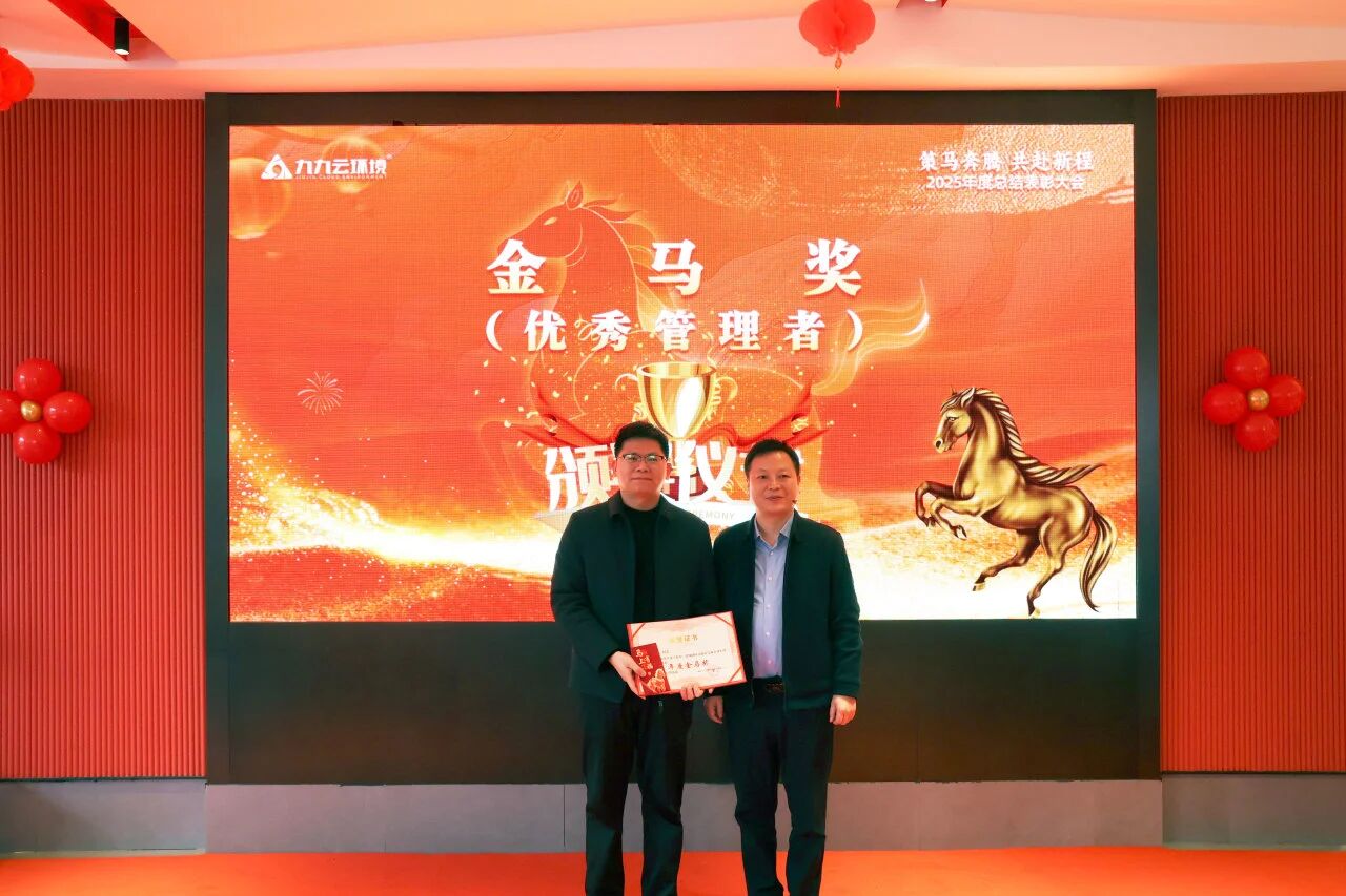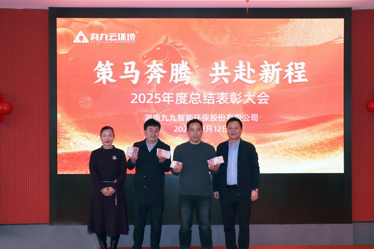 以过往为序章,以奋进迎新春。2026年2月12日,九九智能环保2025年度总结表彰大会在长沙隆重举行。本次大会以“策马奔腾,共赴新程”为主题,总部及宁夏、福建、欧特云等子公司全体员工线上线下欢聚一堂,更有众多仍坚守在项目一线的九九人通过直播远程参与,虽隔屏幕,心意相通。全体九九人共同复盘过去一年的“稳”与“进”,刀刃向内直面短板,并以“精耕细作”为元年号角,全面部署2026年决胜之战。