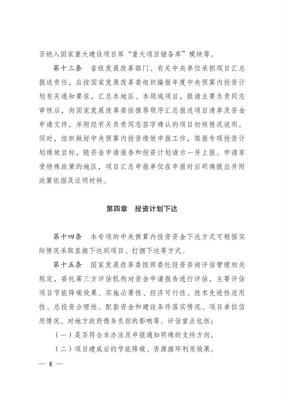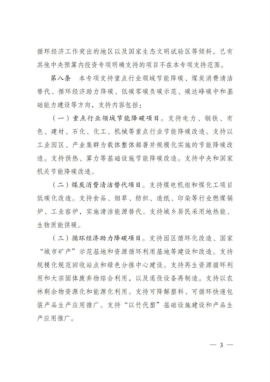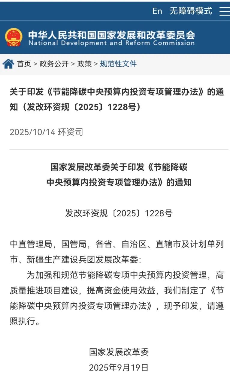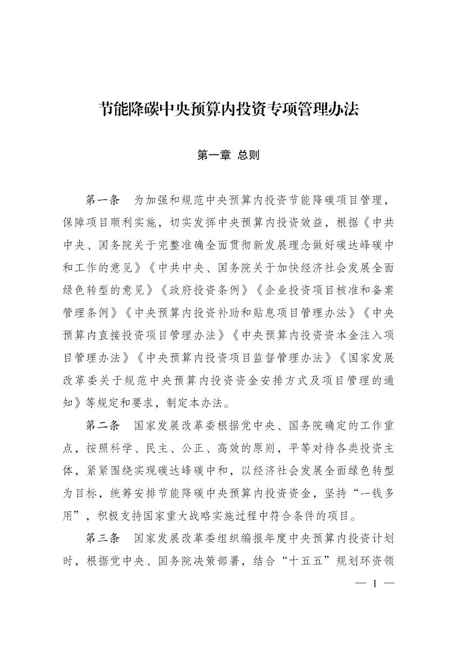 近日,国家发展改革委印发《节能降碳中央预算内投资专项管理办法》,明确专项资金重点支持范围和标准。本次专项资金聚焦重点行业/领域节能降碳、循环经济降碳等核心方向,对碳达峰碳中和先进技术示范及应用项目、重点行业和重点领域节能降碳项目、循环经济助力降碳项目等实施差异化资金支持策略:技术攻坚先锋:列入绿色低碳先进技术示范清单的项目,可获最高30%总投资额补贴,参照技术攻关标准管理示范应用主力:其他碳达峰技术示范及重点行业降碳项目,支持比例不超过20%;循环经济支柱:循环经济降碳项目支持上限为15%;单项目封顶1亿元:所有项目支持资金上限严控在1亿元以内,中央及国家机关项目直接全额保障。中央和国家机关有关项目原则上全额安排,以精准资金杠杆撬动绿色转型新动能!